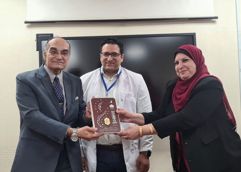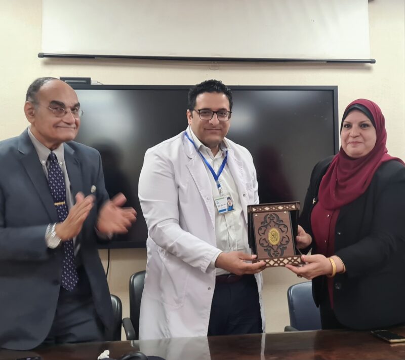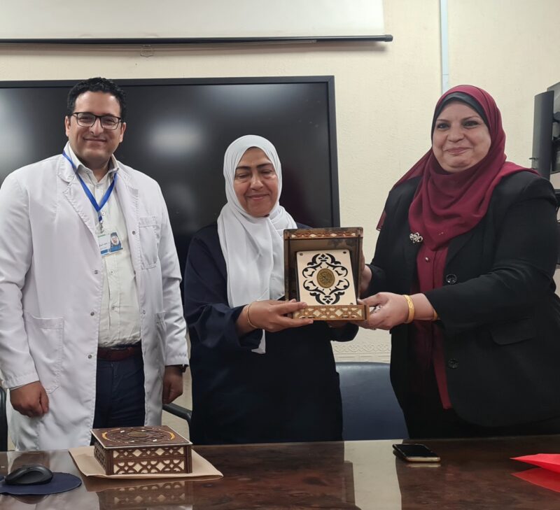 وفي لفتة تقديرية قامت نقيبة التمريض بإهداء مصحف شريف لكل من الدكتور محمد شوقي والدكتور مجدي الحفناوي ورئيسة التمريض بالمركز مس جيهان السعيد، تعبيرًا عن الاحترام والتقدير لدوره.