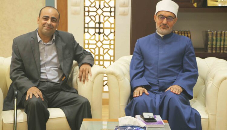 استقبل فضيلةُ الأستاذ الدكتور نظير عياد -مفتي الجمهورية، رئيس الأمانة العامة لدُور وهيئات الإفتاء في العالم- الأستاذ أحمد الصاوي، رئيس تحرير جريدة صوت الأزهر، مهنئًا فضيلته بمناسبة توليه مهام منصب الإفتاء.