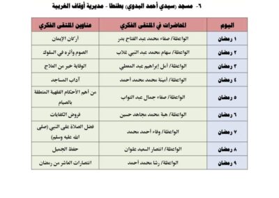 ملتقى فكري للواعظات بالمسجد الأحمدي بطنطا خلال شهر رمضان المبارك