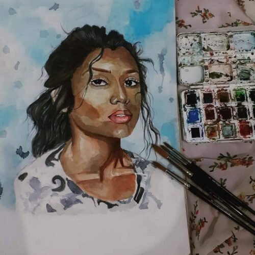 وقضيت فترة أرسم رسم بسيط للترفيه، وبعد فترة من التدريب بدأت في التطور بشكل ملحوظ، وزاد حبي للرسم أكثر وأكثر فأرادت أن ألتحق بكلية فنية لكي أترجم شغفي بفن الرسم إلى دراسة ومهنة، وبالفعل تحققت أمنيتي والتحقت بكلية التربية النوعية قسم فنية ” .
