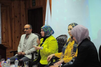 حاضر الندوة الدكتور محمد قضب رئيس الإدارة المركزية للفرع الإقليمي لجهاز شئون البيئة بوسط الدلتا والدكتور داليا شبل استاذ العمارة المساعد بكلية الهندسة جامعة كفرالشيخ.