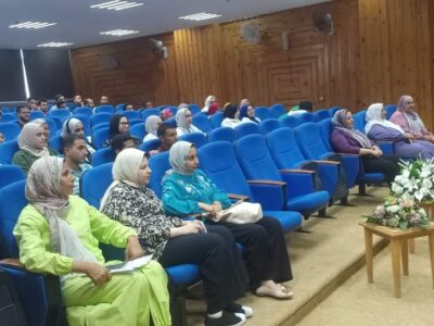 بحضور عدد من أعضاء هيئة التدريس ومعاونيهم والجهاز الإداري وطلاب الكلية.