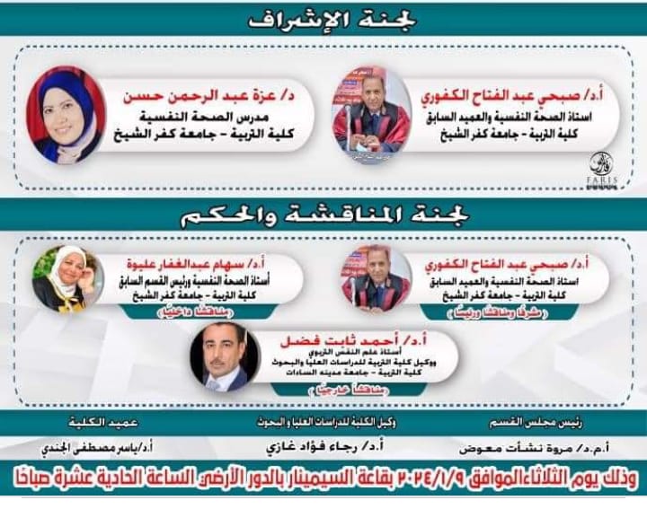 الدكتور صبحي عبدالفتاح الكفوري أستاذ الصحة النفسية والعميد السابق لكلية التربية جامعة كفرالشيخ .. مشرفا ومناقشا ورئيسا