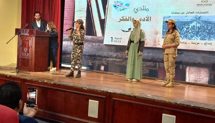 انطلق اليوم من داخل المركز الأولمبي بالمعادى بفندق توليب احتفالية كبري برعاية وزارة الشباب والرياضه تحت مظلة وزير الشباب دكتور اشرف صبحي باسم أبطال مصر احتفالا بانتصارات أكتوبر المجيد والعاشر من رمضان لما سطرته قواتنا الباسلة من انتصارات عظيمة نتشرف بها مدى الدهر وهذه كانت النسخة الثانية من منتدى الأدب والفكر العربى.
