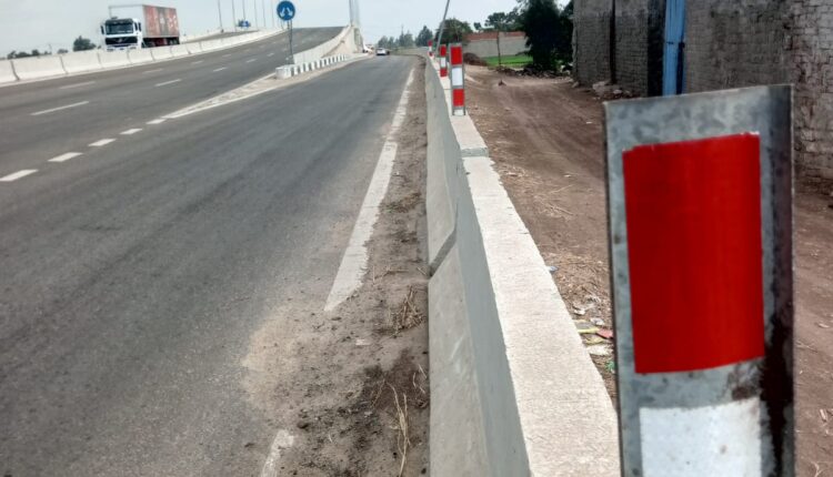 تم تركيب علامات عين القط الحمراء والبيضاء والتي تعكس ضوء السيارات لتوجيه السائقين بالمحنيات بكامل الطريق
