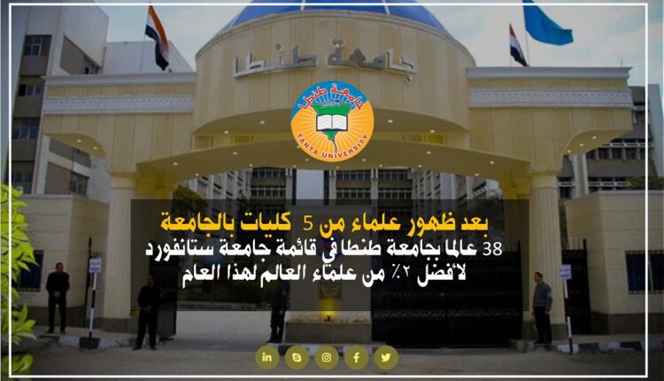 أعلنت جامعة طنطا عن طهور ٣٨ عالما من كليات الطب والهندسة والصيدلة والعلوم والتجارة ضمن قائمة أفضل ٢٪؜ والتي اعلنتها جامعة ستانفورد للعام الحالي بزيادة ١٢ عالما عن العام الماضي.