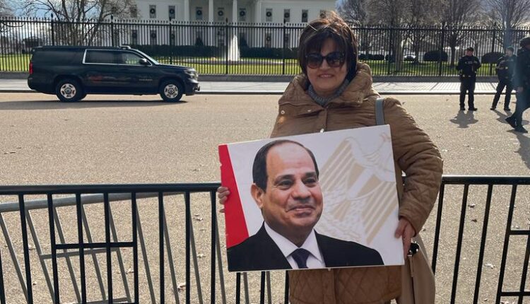 مواطنة مصرية ترفع صورة الرئيس السيسي أمام البيت الأبيض