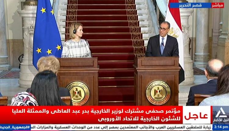 موتمر صحفي لوزير الخارجية وممثلة الشئون الخارجية للاتحاد الأوروبي أخبار مصرExclusive في الأحد, 23 مارس , 2025, الساعة 15:25 ت القاهرة شارك المقالة قد يهمك ايضاً: العلماء يحذرون من تجاوز درجات الحرارة للحدود الآمنة السبت, 15 نوفمبر , 2025, الساعة 17:17 ت القاهرة الرئيس السيسي يطلع على الخطة الإستراتيجية لعمل وزارة البترول… السبت, 15 نوفمبر , 2025, الساعة 16:22 ت القاهرة عقد وزير الخارجية الدكتور بدر عبد العاطي، اليوم الأحد، موتمرا صحفيا مع كايا كالاس الممثلة العليا للشئون الخارجية للاتحاد الأوروبي. شارك المقالة FacebookTwitterPinterestFacebook MessengerTelegramWhatsAppالبريد الإلكترونيPrint