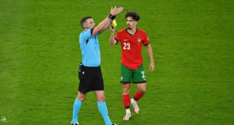 حدث موقف طريف بين اللاعب البرتغالي فيتينيا والحكم مايكل أوليفر خلال مباراة بين منتخبي البرتغال وفرنسا التي أقيمت على أرض ملعب فولكسبارك الجمعة في الدور ربع النهائي من يورو 2024 .