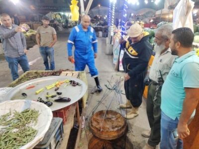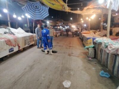 وناشد اللواء عبدالحميد عصمت تجار السوق بعدم القاء مخلفات الخضر والفاكهة داخل غرف التفتيش والتي تؤدي الي انسداد الخطوط وينتج عنها الطفح وطالبهم بحسن التعامل مع مرافق السوق واهمها خطوط الصرف الصحى .
