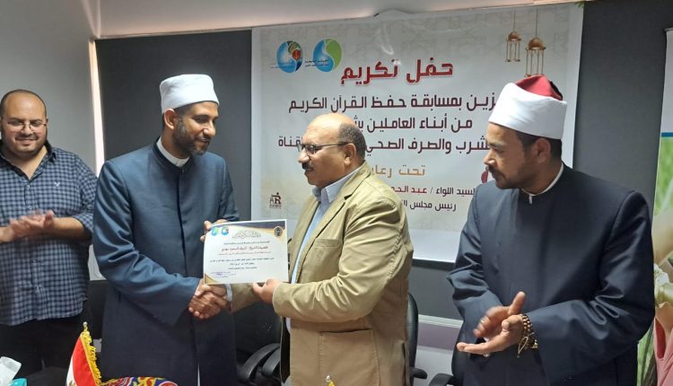 وقد قام اللواء عبد الحميد عصمت رئيس مجلس الإدارة والعضو المنتدب بتكريم السادة الفائزين المشاركين بمسابقة حفظ القرآن الكريم من أبناء العاملين بالشركة وتقديم شهادات تقدير وهدايا عينية لتشجيعهم وحثهم على مزيد من التقدم والنجاح ، وبحضور الشيخ أشرف السعيد مدير منطقة الوعظ بالاسماعيلية ، والشيخ هانى عبد العظيم مدير عام التوجيه ومشرف عام لجان الفتوى بالاسماعيلية وعدد من القيادات الفنية والتنفيذية يالشركة