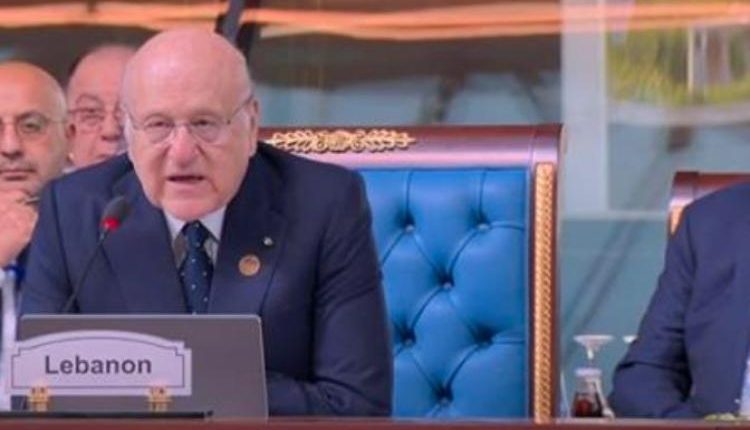 طالب ميقاتي خلال الجلسة الخاصة لمناقشة الأوضاع في فلسطين ولبنان، على هامش قمة الدول الثماني النامية بالقاهرة، دول العالم بالضغط على إسرائيل التي تواصل عدوانها على بلادنا.