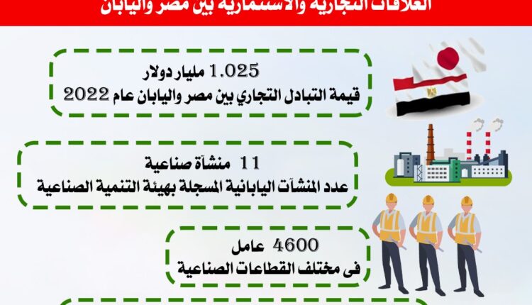 جاء ذلك في سياق أحدث تقرير تلقاه الوزير بشأن تطور العلاقات التجارية والاستثمارية بين مصر اليابان خلال عام 2022 .