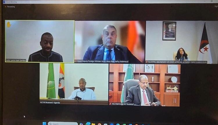 جاء ذلك خلال مشاركة نائب وزير الخارجية في اجتماع مجلس السلم والأمن الإفريقي الذي عقد على مستوى القمة بشكل افتراضي وترأسه الرئيس الأوغندي يوري موسيفيني ومحمود علي يوسف رئيس مفوضية الاتحاد الإفريقي وبمشاركة العديد من الزعماء والقادة والمسؤولين الأفارقة والدوليين بما في ذلك دينيس ساسو نجيسو رئيس جمهورية الكونجو ورئيس لجنة الاتحاد الأفريقي رفيعة المستوى حول ليبيا وهانا تيته المبعوث الشخصي لسكرتير عام الأمم المتحدة إلى ليبيا و رئيسة البعثة الأممية إلى ليبيا.
