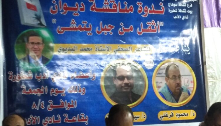 نظم نادى أدب بيت ثقافة قرية شطورة بشمال محافظة سوهاج ندوة أدبية تم خلالها مناقشة الديوان الشعرى ( أثقل من جبل يتمشى )