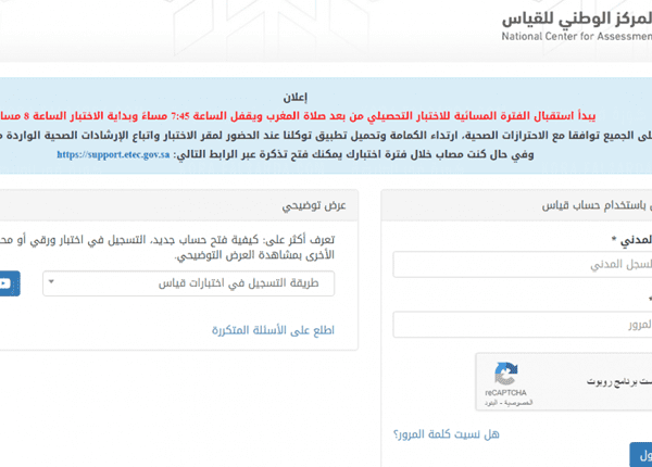 معرفة نتائج التحصيلي عبر موقع قياس https://e-services.etec.gov.sa/Qiyas.TRAS.Web.Internet/