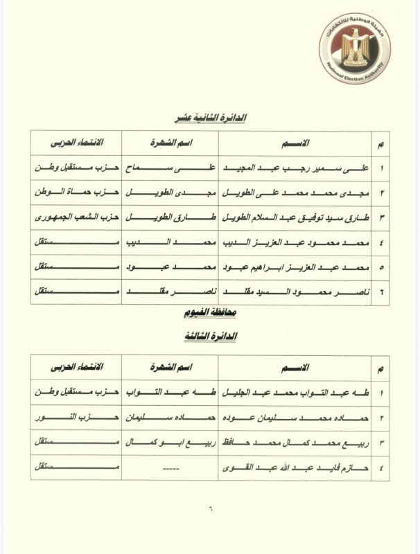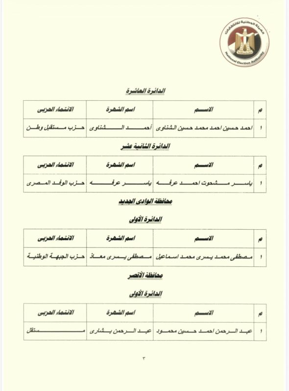 أعلنت الهيئة الوطنية للانتخابات نتائج تصويت المرحلة الاولى لانتخابات النواب في في 30 دائرة ملغاة.