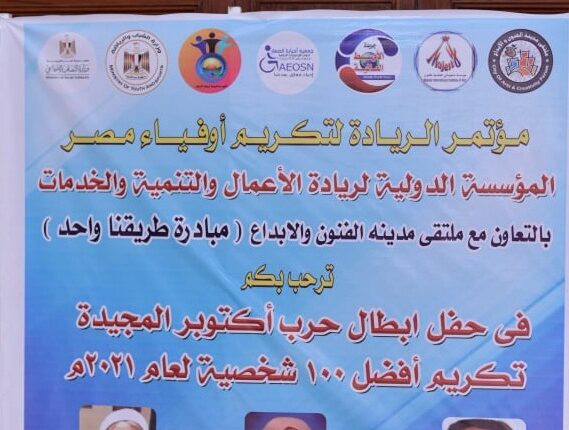 وقد اكد منسق عام المؤتمر المستشار عادل عبد المنعم ان الحفل يقام تحت رعاية المؤسسة الدولية لريادة الأعمال والتنمية والخدمات بالتعاون مع ملتقى مدينه الفنون والإبداع تحت شعار (مبادرة طريقنا واحد) فى حفل أبطال حرب أكتوبر المجيدة تكريم افضل 100شخصية لعام 2021 م