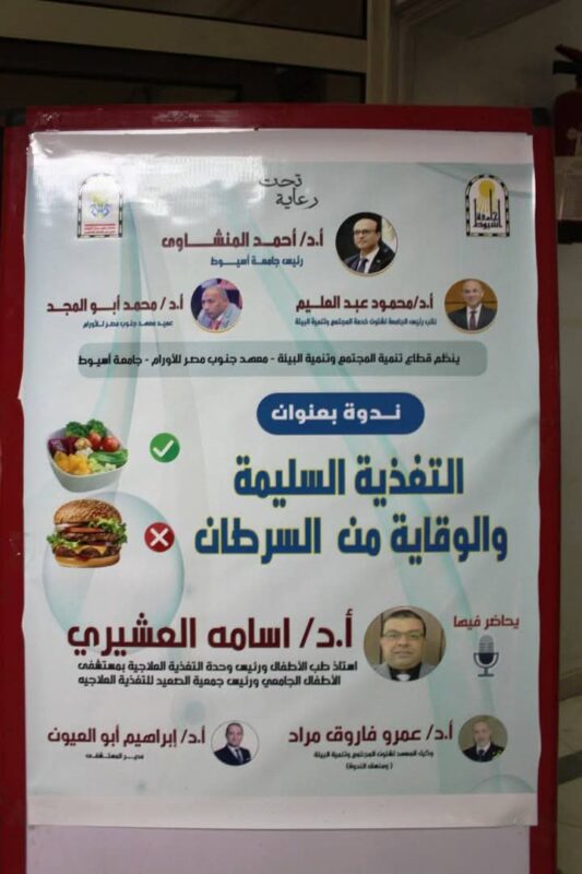 تحت رعاية الدكتور أحمد المنشاوي، رئيس الجامعة، نظم معهد جنوب مصر للأورام بجامعة أسيوط، ندوة توعوية بعنوان “التغذية السليمة وأمراض السرطان”، وذلك في إطار حرص الجامعة على نشر الوعي الصحي بين أفراد المجتمع الجامعي والمجتمع الخارجي.