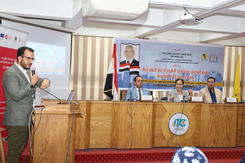 تحت رعايه الدكتور عصام فرحات رئيس جامعه المنيا ، استضافت الجامعه اللجنه الوطنيه التنسيقيه لمكافحه ومنع الهجره غير الشرعيه والاتجار بالبشر ، برئاسه السفيره نائله جبر ، لاقامه ندوه توعويه بعنوان “التوعيه بمخاطر الهجره غير الشرعيه وطرح البدائل المتاحه” ، نظمت الندوه اداره النشاط الاجتماعي بالاداره العامه لرعايه الطلاب ، بمشاركه اعضاء هيئه التدريس وطلاب الجامعه ، وبحضور الدكتور حسام عبد الرحيم منسق عام الانشطه انشطه الطلابيه ، واستاذ وليد عبد القوي مدير عام رعايه الطلاب ، ومنسقى الانشطه ومديري الإدارات والاخصائيين .