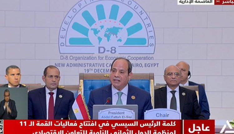 افتتح الرئيس عبد الفتاح السيسي، اليوم، قمة الدول الثماني النامية للتعاون الاقتصادي، التي تعقد بالعاصمة الإدارية الجديدة تحت عنوان “الاستثمار في الشباب ودعم المشروعات الصغيرة والمتوسطة: نحو تشكيل اقتصاد الغد”، وذلك بحضور قادة الدول الأعضاء بالمنظمة وعدد من قادة الدول النامية والمنظمات الإقليمية والدولية.