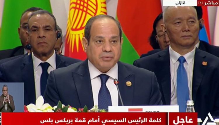 أعرب مجددا عن تقديرى، لفخامة الرئيس “فلاديمير بوتين”، لدعوته لاجتماع اليوم بصيغة “بريكس بلـس”.. كما أرحب بالسادة رؤساء الدول والحكومات المشاركين فى الاجتماع، الذى يؤكد الأهمية المتزايدة لتجمع البريكس.. باعتباره تجمعا قائما على التعاون والاحترام المتبادل بين الدول، ويعكس كذلك حرص التجمع، على تكثيف التشاور والتنسيق الفعال، مع الدول الصديقة والمؤثرة من خارجه، بهدف تحقيق مصالحنا المشتركة.