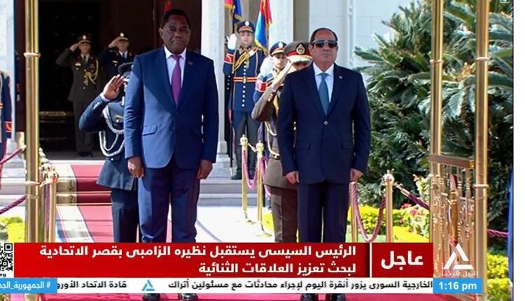 استقبل الرئيس عبد الفتاح السيسي، اليوم الإثنين، بقصر الاتحادية، الرئيس الزامبي “هاكيندي هيشيليما”، حيث أقيمت مراسم الاستقبال الرسمي وتم عزف السلامين الوطنيين واستعراض حرس الشرف.