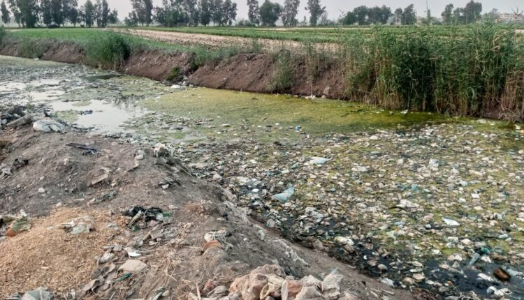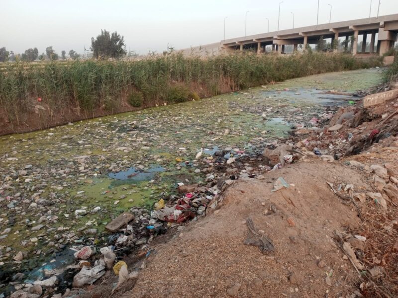 حيث تلاحظ أن هناك مخلفات كثيره بالمصرف سواء قمامة أو ردم ألقاه بعض المواطنين في المصرف.