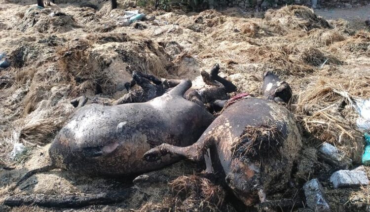 ، وأسفر الحريق عن نفوق 3 رؤوس مواشى.