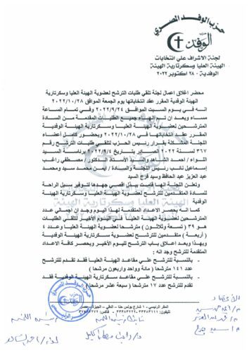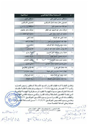 ننشر أسماء جميع المتقدمين للترشيح لإنتخابات الهيئة العليا للوفد