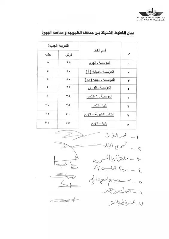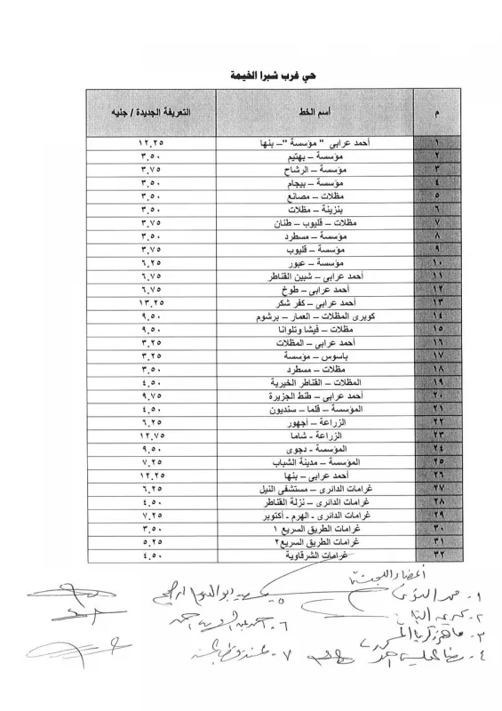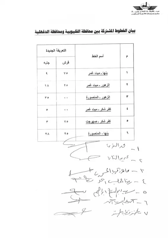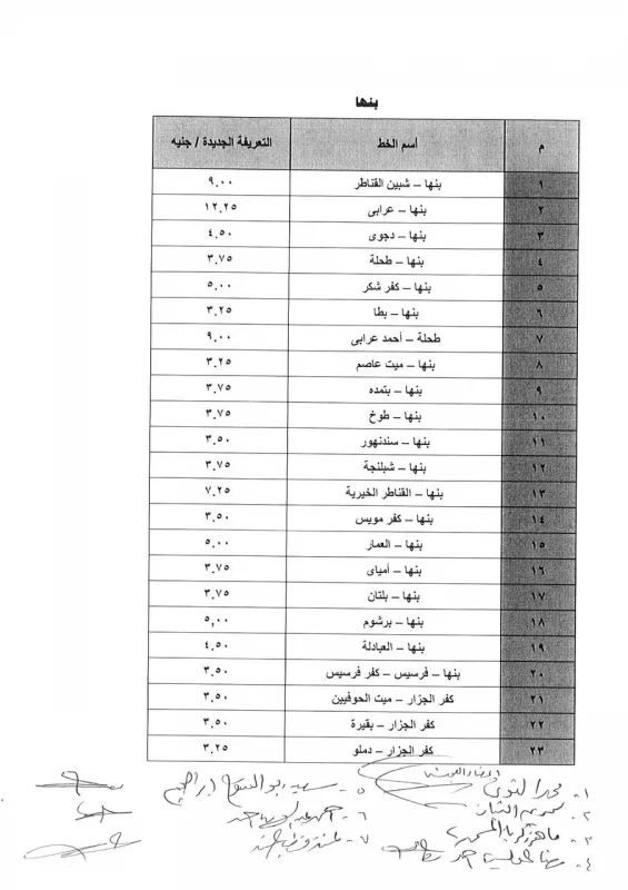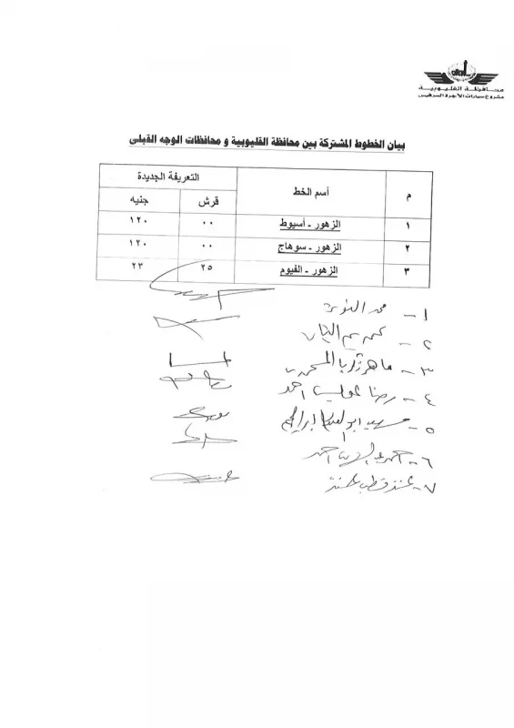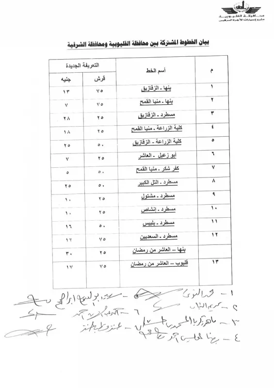 تعريفة الركوب الجديدة لسيارات الأجرة بالخطوط الداخلية والخارجية بالقليوبية