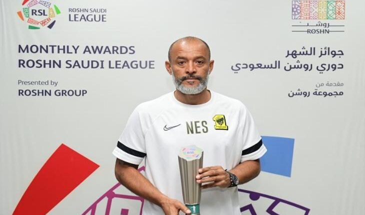 تسلم البرتغالي نونو سانتو، المدير الفني لفريق اتحاد جدة، مساء اليوم الجمعة، جائزة أفضل مدرب في الدوري السعودي خلال شهر أغسطس.