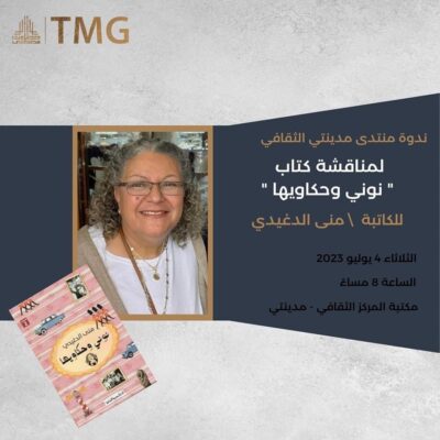 يستضيف منتدى مدينتي الكاتبة منى الدغيدي في ندوة حول كتابها الممتع “نونى وحكاويها”.