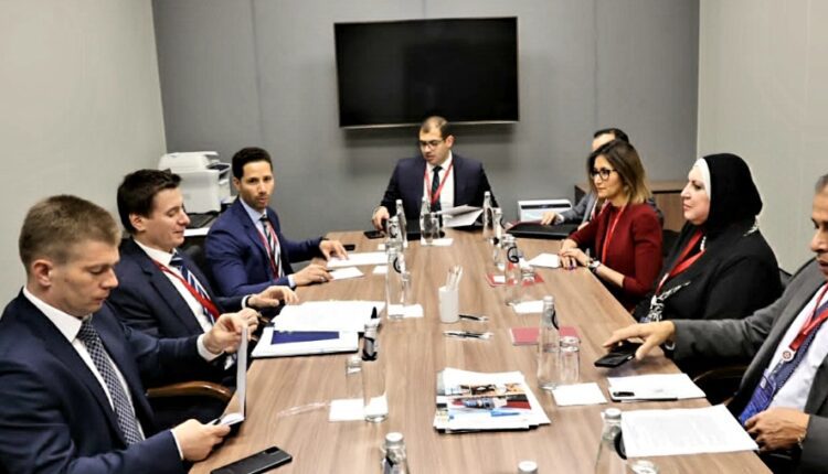 جاء ذلك خلال جلسة المباحثات الموسعة التي عقدتها الوزيرة مع السيد/ أندريه سليبنيف وزير تجارة الاتحاد الاقتصادي الأوراسي وذلك فى ختام مشاركة الوزيرة فى فعاليات منتدى سانت بطرسبرج الاقتصادى الدولى، وقد شارك فى اللقاء السفير نزيه النجارى سفير مصر بموسكو والوزير مفوض تجارى يحيى الواثق بالله رئيس التمثيل التجارى والسيد /، حاتم العشرى مستشار الوزيرة للاتصال المؤسسى والوزير مفوض تجارى ياسر مصطفى رئيس المكتب التجارى بموسكو .