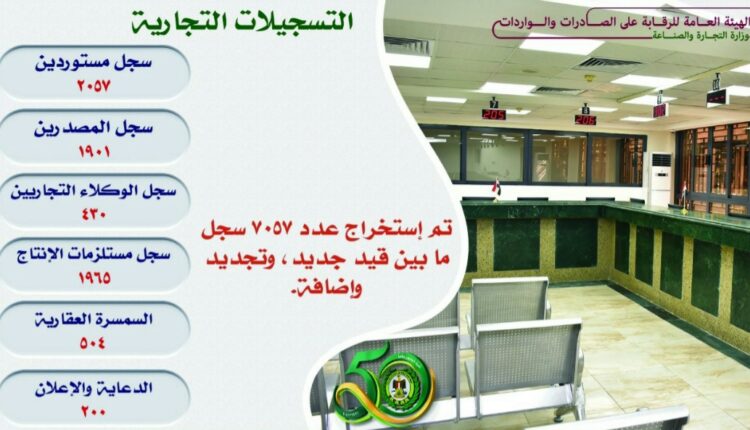 واضاف النجار ان الهيئة قامت خلال الفترة محل التقرير بإصدار 99 ألف و210 شهادة منشأ إلى جانب إجراء الفحص المعملي لـ50 ألف و552 عينة منها 34 ألف و633 عينة بالمعامل الغذائية والكيماوية و15 ألف و919 عينة بالمعامل الصناعية، لافتاً الى ان الهيئة أصدرت 7 آلاف و57 تسجيلاً تجارياً تضمنت 2057 سجل مستوردين و1901 سجل مصدرين بالاضافة الى 430 سجل للوكلاء التجاريين و1965 سجل مستلزمات انتاج، و504 سجل وسطاء عقاريين، و200 سجل لوكالات الدعاية والإعلان.