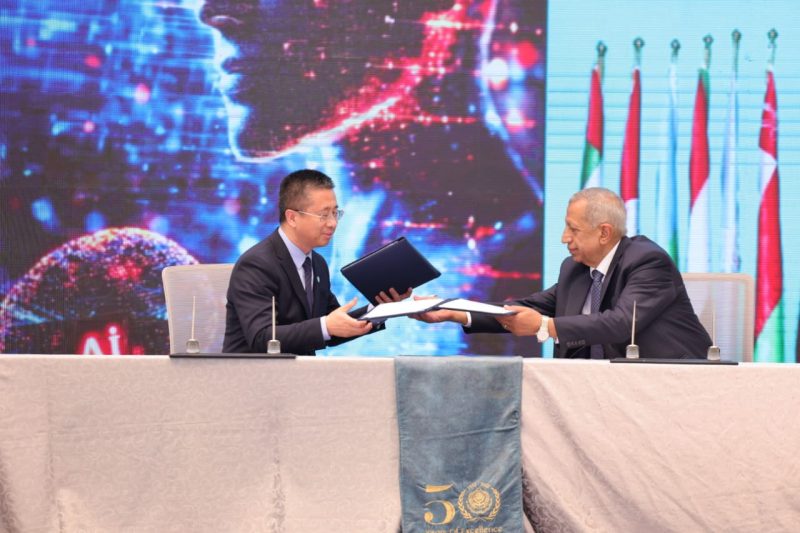 شهد توقيع مذكرة التفاهم معالي الدكتور أحمد أبو الغيط، الأمين العام لجامعة الدول العربية، ومعالي الدكتور عمرو طلعت، وزير الاتصالات وتكنولوجيا المعلومات، حيث وقع المذكرة السيد دو يونغ، نائب الرئيس الأول لشركة هواوي، والأستاذ الدكتور إسماعيل عبد الغفار، رئيس الأكاديمية العربية للعلوم والتكنولوجيا والنقل البحري (AASTMT) بحضور الدكتور خالد حنفي، الأمين العام لاتحاد الغرف العربية، والمهندسة أسماء سراج، المدير التنفيذي لأكاديميات هواوي في مصر.