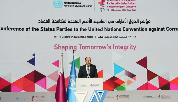 كما أعرب سيادته عن خالص التهنئة لدولة قطر بمناسبة توليها رئاسة الدورة الحادية عشرة للمؤتمر، مؤكدًا أهمية تعزيز العمل المشترك والتعاون البنّاء بين الدول لتحقيق مستقبل أكثر نزاهة واستدامة.