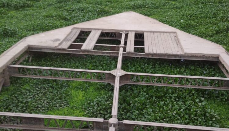 حيث امتدت أوراق ورد النيل على إمتداد البصر من كوبري السنطة على بحر شبين لمسافة 2 كيلو متر من الجهه القبلية كوبري السنطة