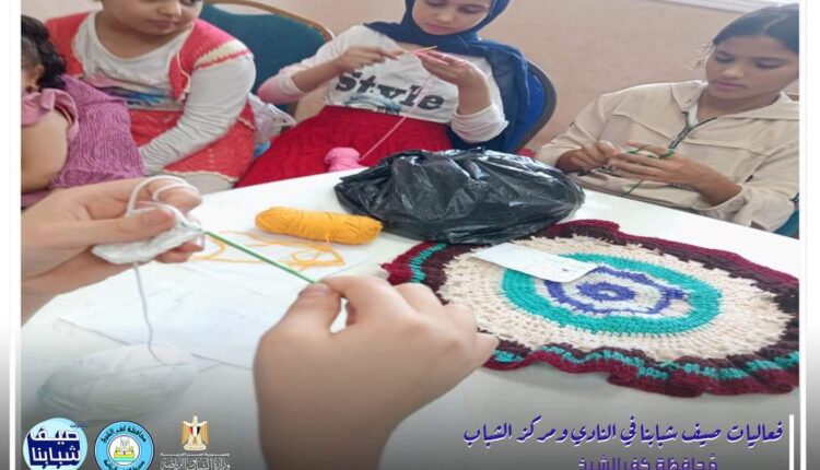 نظم مركز شباب خليج بحري بمطوبس محافظة كفرالشيخ ورشة عمل تدريبية في أعمال الكروشية والأشغال اليدوية للنشء بمشاركة 25 فتاة من أعضاء مركز الشباب ضمن فعاليات مبادرة “صيف شبابنا”.
