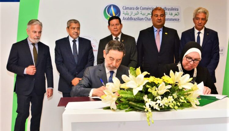 وقعت وزارة التجارة والصناعة وغرفة التجارة العربية البرازيلية مذكرة تفاهم بشأن إنشاء مكتب تمثيل للغرفة بالقاهرة بهدف الترويج التجاري والتعاون الإقتصادي بين مصر والبرازيل والدول المحيطة بها، وقع الاتفاق نيفين جامع وزيرة التجارة والصناعة واوسمار شحفة رئيس غرفة التجارة العربية البرازيلية، شهد مراسم التوقيع هاميلتون مورآو نائب رئيس جمهورية البرازيل الاتحادية وأنطونيو باتريوتا سفير البرازيل بالقاهرة والدكتور خالد حنفى أمين عام اتحاد الغرف التجارية العربية والمهندس إبراهيم العربى رئيس الاتحاد العام للغرف التجارية .