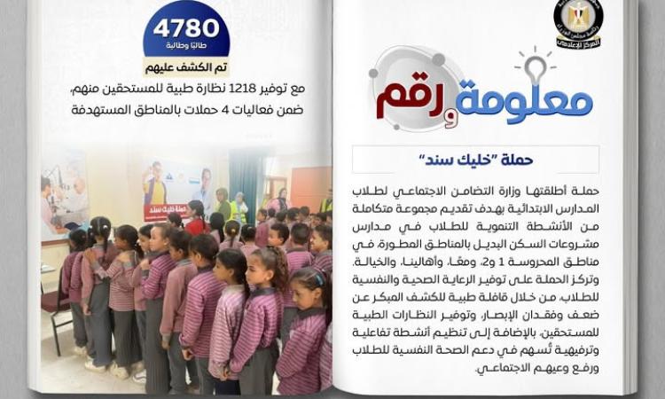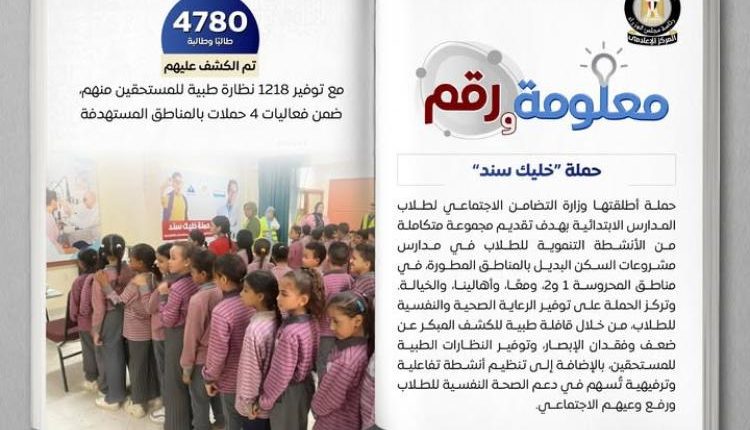 أطلقت وزارة التضامن الاجتماعي حملة “خليك سند” داخل المدارس الابتدائية ،وذلك في إطار دعم الدولة لسكان مشروعات السكن البديل