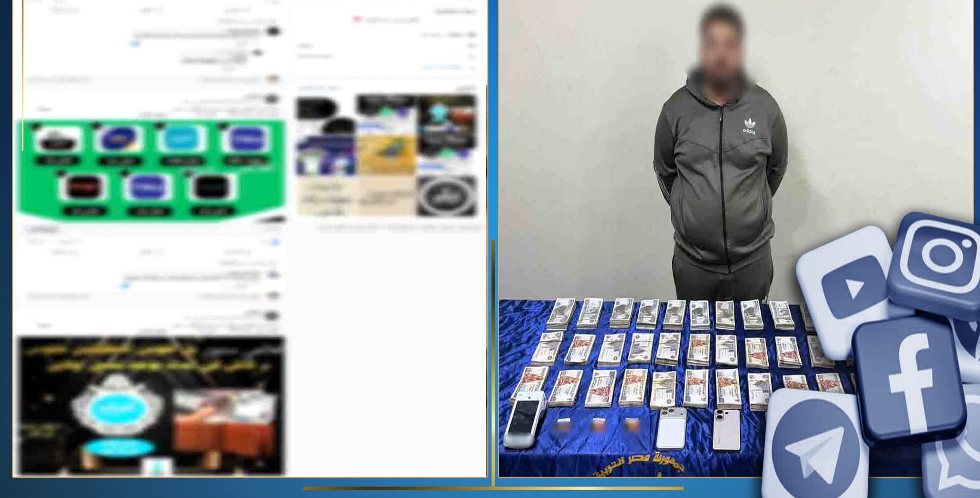 تمكنت الإدارة العامة لمكافحة جرائم تقنية المعلومات بقطاع نظم الاتصالات وتكنولوجيا المعلومات، بالتنسيق مع قطاع الأمن العام، من ضبط شخص يمارس نشاطًا إجراميًا عبر مواقع التواصل الاجتماعي.