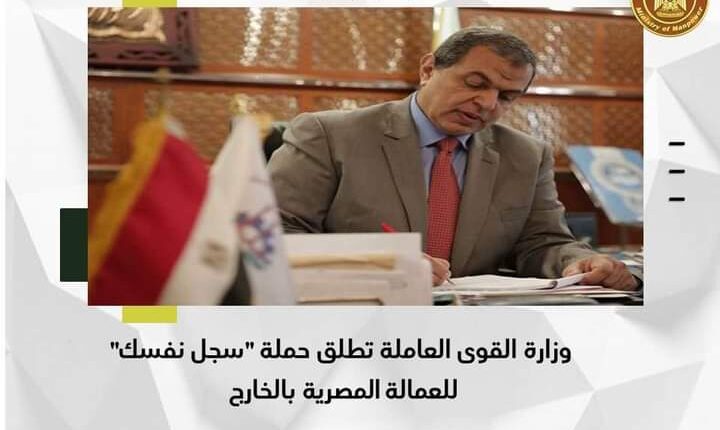 وقال الوزير : ” إنه من منطلق اهتمام الدولة المصرية بتحقيق التواصل الكامل فيما بين أبناء الوطن بالخارج وجميع الأجهزة التنفيذية والوزارات بمصر ، تُطلق وزارة القوى العاملة المصرية حملة (سجل نفسك) على موقعها الإلكتروني ، وعلى جميع العاملين المصريين بالخارج تسجيل بياناتهم بالاستمارة الخاصة بالعمالة المصرية بالخارج ، مما يتيح لكل جهات الدولة المصرية الإطلاع على احتياجاتهم وإزالة أي عائق أمامهم وتسهيل الاتصال السريع بهم” .