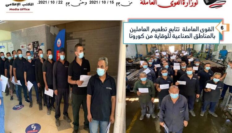 وتابع سعفان، من خلال غرفة العمليات الدائمة المشكلة بديوان عام الوزارة وجميع مديريات القوى العاملة، على مستوى 27 محافظة، لحظيًا الإجراءات الاحترازية المطبقة من قبل المصانع والشركات والمنشآت لحماية العمالة، فضلا عن اتباع إجراءات الوقاية الشخصية من ماسكات وقفازات، وذلك من خلال مفتشى العمل والسلامة والصحة المهنية، بالإضافة إلي متابعة تطعيم العاملين بالمناطق الصناعية للوقاية من فيروس كورونا.