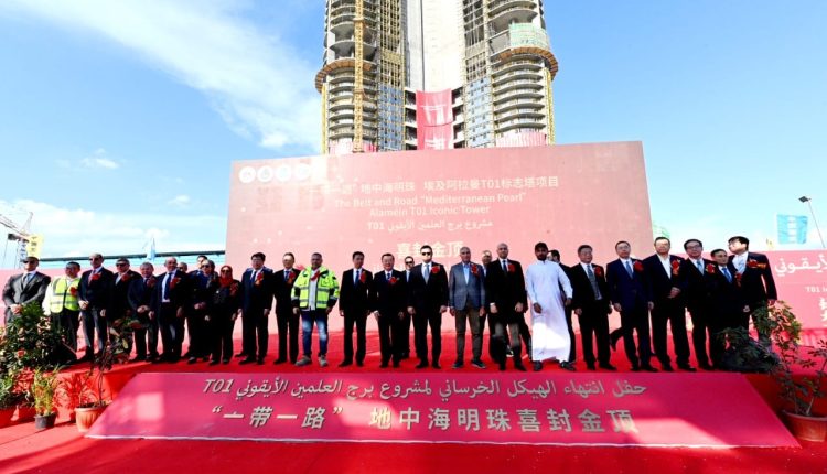 وزيرا الإسكان المصرى والصينى وقنصل الصين بمصر يشهدون حفل انتهاء الهيكل الخرسانى للبرج الأيقونى بالعلمين الجديدة