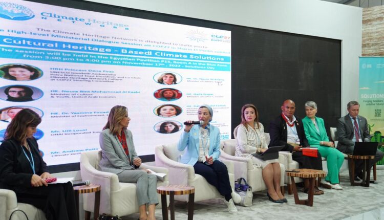 شاركت الدكتورة ياسمين فؤاد وزيرة البيئة والمنسق الوزارى ومبعوث مؤتمر المناخ فى الجلسة الوزارية رفيعة المستوى “حلول مناخية قائمة على التراث الثقافي” التى عقدت بالجناح المصر بالمقام بالمنطقة الزرقاء لمؤتمر الأطراف ال٢٧ لإتفاقية الأمم المتحدة الإطارية حول التغيرات المناخية الذى يعقد بمدينة شرم الشيخ خلال الفترة من ٦إلى ١٨نوفمبر الحالى ، بحضور الدكتورة نيفين الكيلاني وزير الثقافة المصرية ، السيدة نورة بنت محمد الكعبي وزيرة الثقافة والشباب بالإمارات العربية المتحدة، الأميرة دانا فراس سفيرة اليونسكو للنوايا الحسنة رئيس صندوق البتراء الوطني والرئيس المشارك لشبكة ثقافة التراث المناخي في اللجنة التوجيهية COP27 ، السيدة جينارو سانجوليانو وزير الثقافة الإيطالية ، السيدة هيفاء نجار وزيرة الثقافة الأردنية، ووزيرة الموارد المائية والرى الأردنى، وسفير الأردن بالقاهرة