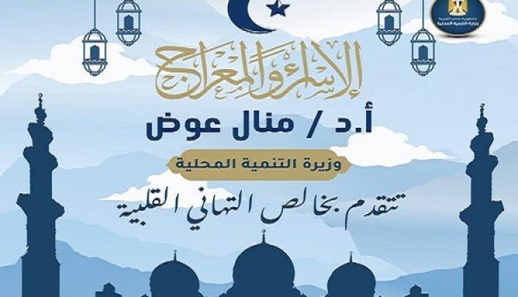 وقالت وزيرة التنمية المحلية- في نص البرقية- “يسعدني أن أتقدم لفخامتكم بأصدق التهاني وأطيب التمنيات بمناسبة حلول ذكرى الإسراء والمعراج.. وأدعو المولى- عز وجل- أن يعيد هذه المناسبة الدينية الكريمة على عليكم وعلى الشعب المصري والأمة الإسلامية بالخير واليمن والبركات، وأن يحفظ مصر ويرفع شأنها ويحقق آمالها في الأمن والاستقرار والتنمية وأن يعم ربوعها السلام بجهود فخامتكم و رجالها المخلصين.. وكل عام وفخامتكم وشعب مصر بخير وسلام”.