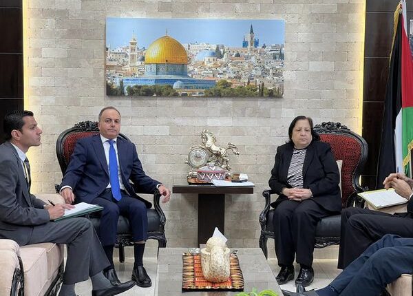 تبحث وزيرة الصحة الفلسطينية د. مي الكيلة اليوم مع سفير جمهورية مصر العربية لدى دولة فلسطين إيهاب سليمان، مستجدات آثارِ العدوان الاسرائيلي على قطاع غزة، والجهود المبذولة من قبل دولة فلسطين والجمهورية المصرية لتوفير الدعم الصحي العاجل لأبناء شعبنا في القطاع، بحضور مستشار الوزيرة لشؤون قطاع غزة د. فتحي أبو وردة ورئيس وحدة التعاون الدولي د. ياسر بوزية.