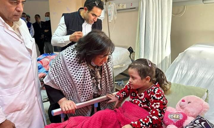 كما تفقدت وزيرة الصحة الأطفال الجرحى في مستشفى العريش، وهم يعانون من بتر بالأطراف وإصابات وكسور متعددة.