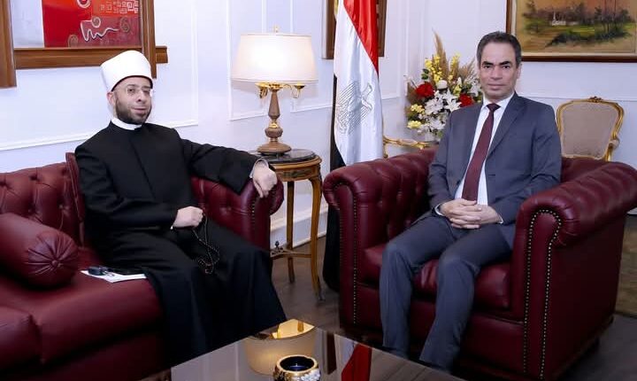 استقبل الكاتب أحمد المسلماني رئيس الهيئة الوطنية للإعلام وزير الأوقاف الدكتور أسامة الأزهري ، قبيل افتتاح مسجد الإمام الليث بن سعد بالتلفزيون المصري ، بعد تجديده .
